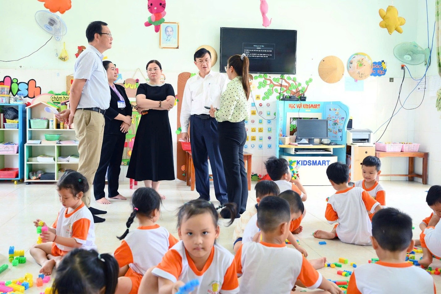 Hình 3. Thực địa kiểm tra công tác phòng, chống bệnh TCM tại Trường Mầm non Họa Mi, xã Bến Lức, tỉnh Tây Ninh ngày 15/04/2026