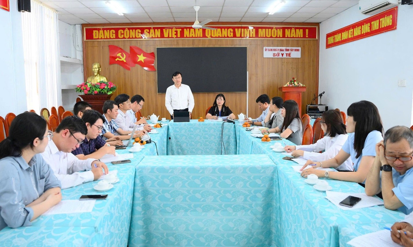 Hình 4. Họp tổng kết chuyến công tác với lãnh đạo Sở Y tế Tây Ninh và đại diện