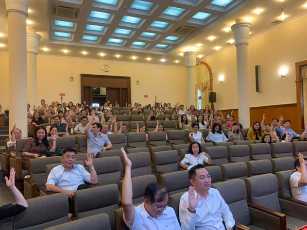 Cử tri biểu quyết giới thiệu PGS.TS.BSCKII. Nguyễn Vũ Trung tham gia ứng cử đại biểu Quốc hội tại Hội nghị