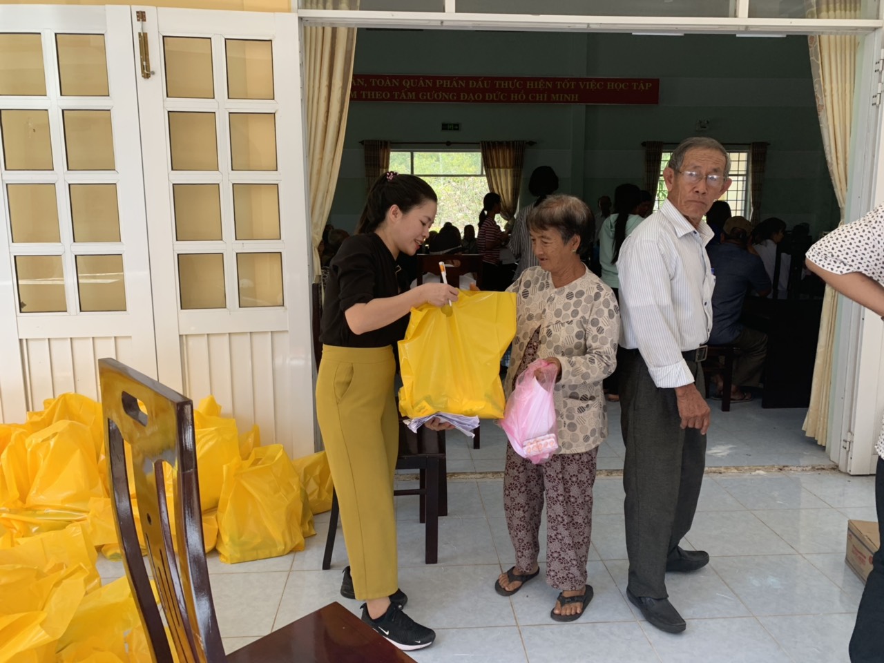 Ai ra về cũng có trong tay thuốc của mình, một túi quà và cả nhưng nụ cười tươi rói trên môi, "chờ đợi lâu thì cũng mệt, nhưng khám xong thì tinh thần của chúng tôi thoải mái lắm, chúng tôi nhận được nhiều lời khuyên của bác sỹ ở đây, ăn uống sạch, vệ sinh sạch, tập thể dục hàng ngày không những tốt cho bọn tui và cả người thân chúng tôi nữa. Cám ơn các anh chị rất nhiều lắm, hãy nhớ Tân Tiến và quay lại nhé" lời chia sẻ của một cụ cũng là lời khích lệ rất lớn đến chi hội và cũng là động lực để chi hội tổ chức nhiều đợt khám như vậy ở khắp mọi nơi trên mảnh đất hình chữ S này. Vừa tốt cho người vừa tốt cho mình, sống tốt hơn và suy nghĩ tích cực hơn là tiêu chí của chi hội.
