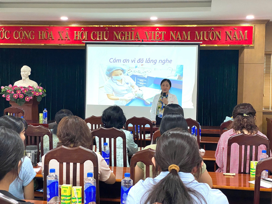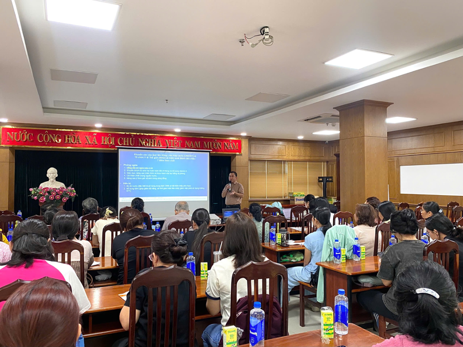 Tiếp nối chương trình, Bác sĩ Hồ Ngọc Hiền Nhơn, cán bộ Khoa Kiểm soát và Phòng ngừa bệnh tật, đã trình bày chuyên đề về bệnh tay chân miệng – một bệnh thường gặp ở trẻ nhỏ, đặc biệt trong giai đoạn thời tiết thay đổi. Bác sĩ đã hướng dẫn cụ thể các biện pháp phòng bệnh như giữ vệ sinh cá nhân, rửa tay bằng xà phòng, vệ sinh đồ chơi và môi trường sống, cũng như cách chăm sóc trẻ khi mắc bệnh nhằm hạn chế lây lan trong cộng đồng.