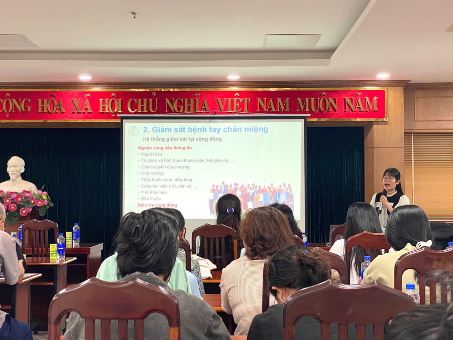 BS. Hồ Ngọc Hiền Nhơn cán bộ Khoa Kiểm soát và Phòng ngừa bệnh tật, Viện Pasteur TP.HCM đã trình bày chuyên đề về bệnh tay chân miệng