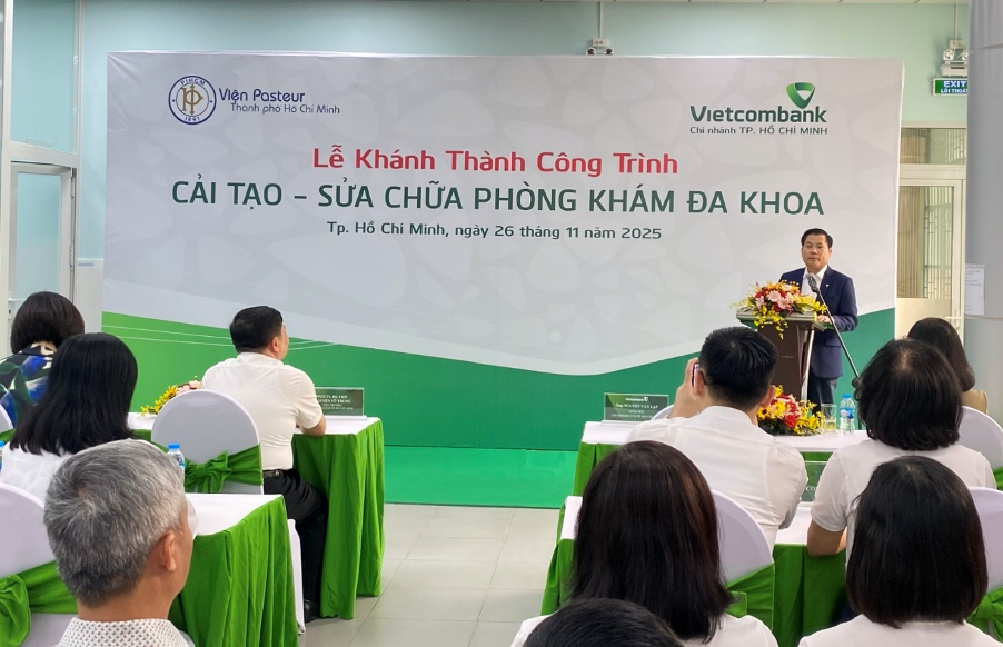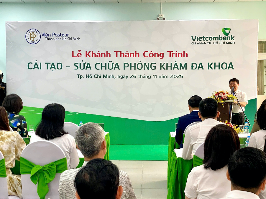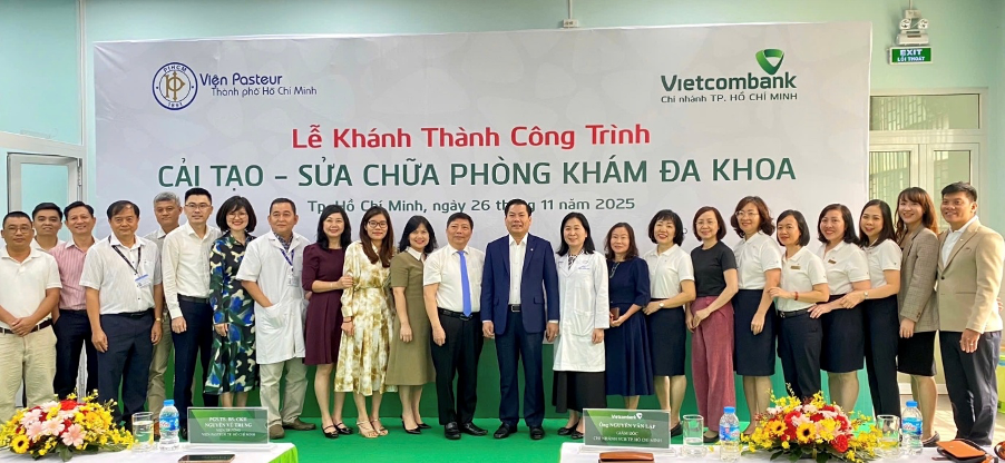 Ngày 28/11/2025, Viện Pasteur TP. Hồ Chí Minh đã long trọng tổ chức Lễ khánh thành công trình cải tạo – sửa chữa Phòng khám Đa khoa. Dự án do Ngân hàng TMCP Ngoại thương Việt Nam (Vietcombank) – Chi nhánh TP. Hồ Chí Minh tài trợ, nhằm nâng cấp cơ sở vật chất và nâng cao chất lượng dịch vụ chăm sóc sức khoẻ cho người dân.